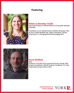 Join us for a discussion of these developments and their implications for Canadian and global climate policy, featuring: Rebecca Bromley-Trujilo & Mark Winfield.